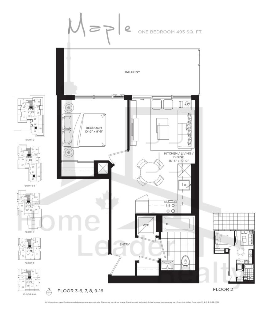Maple 1 Bed , 1 Bath 495 SQFT North