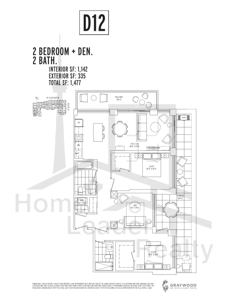 1108 D4 2.5 Bed , 2 Bath 953 SQFT South West