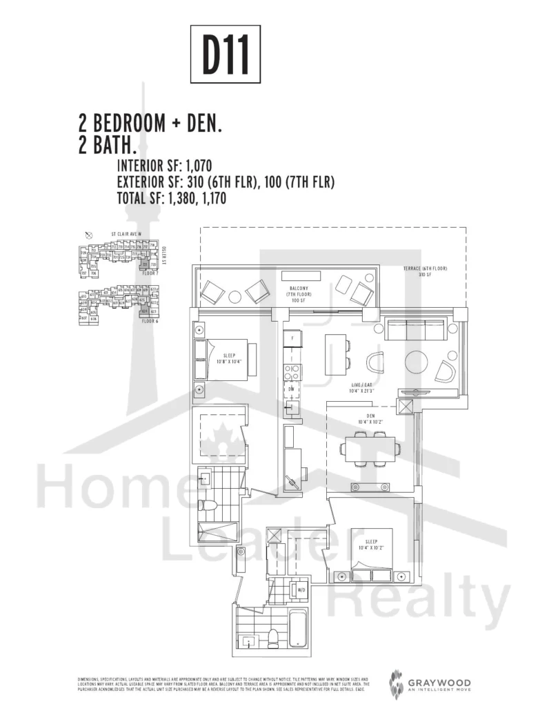 1108 D4 2.5 Bed , 2 Bath 953 SQFT South West