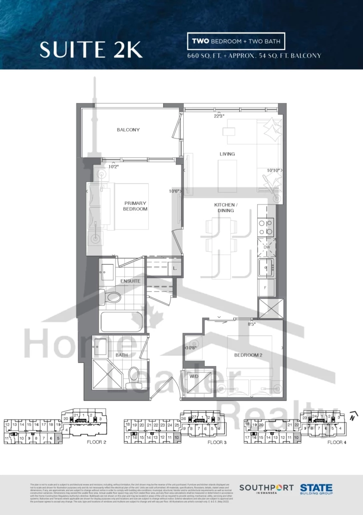 205 2K 2 Bed , 2 Bath 660 SQFT South