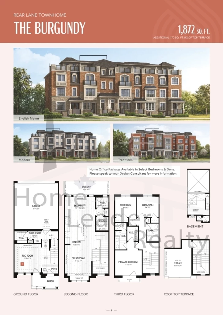 The Burgundy (GRLB) English Manor 4 Bed , 3 Bath 1872 SQFT