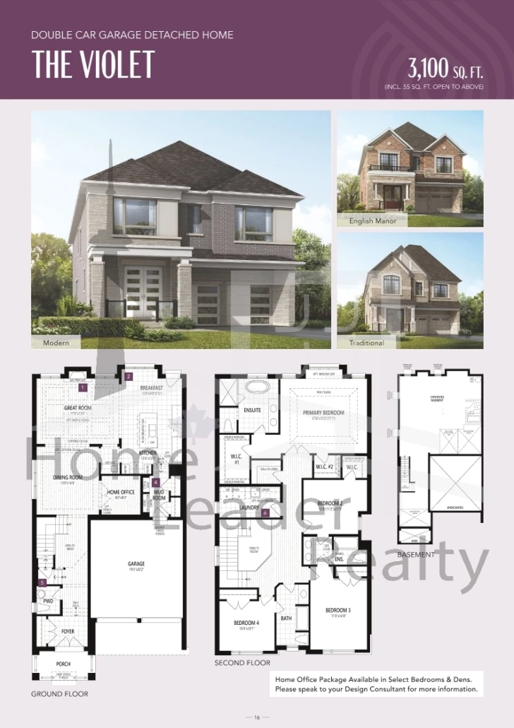 The Violet (B38L) English Manor 4 Bed , 4 Bath 3100 SQFT