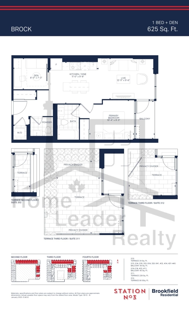 | available   | Brock | 1.5 Bed , 1.5 Bath | 625 SQFT | East |