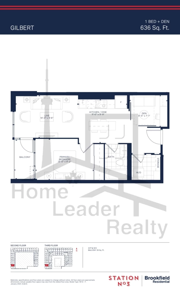 Gilbert 1.5 Bed , 1 Bath 636 SQFT West
