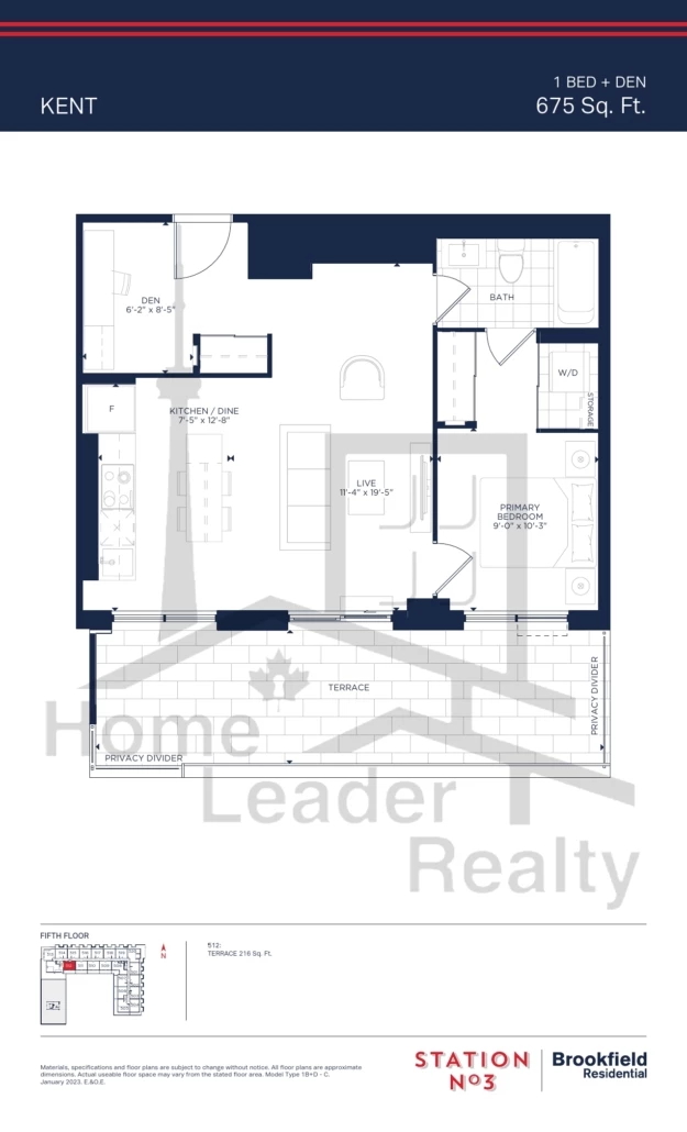 Brock 1.5 Bed , 1.5 Bath 625 SQFT East