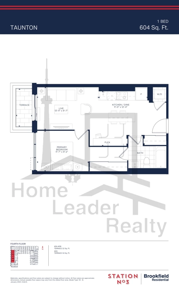 Brock 1.5 Bed , 1.5 Bath 625 SQFT East