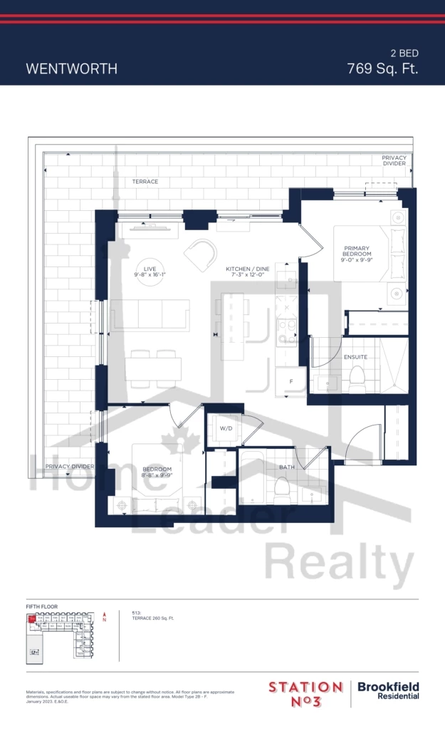 Wentworth 2 Bed , 2 Bath 769 SQFT North / West