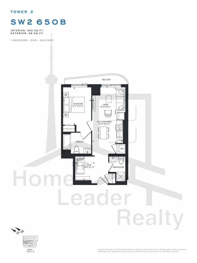 SW2-650 1.5 Bed , 2 Bath 650 SQFT North