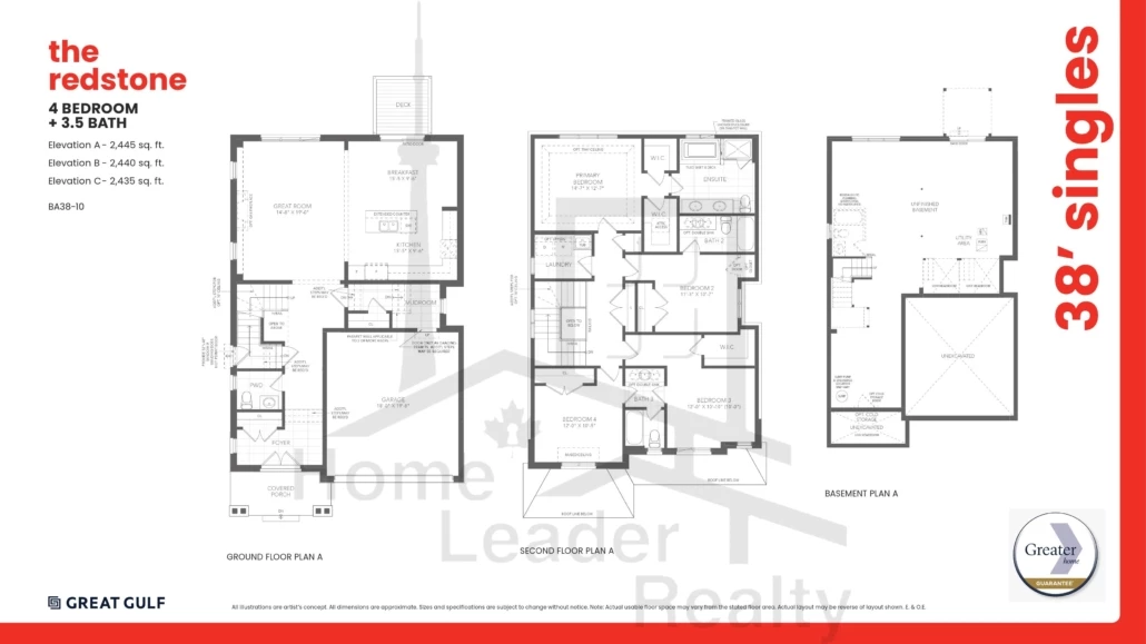 The Redstone A 4 Bed , 3.5 Bath 2445 SQFT