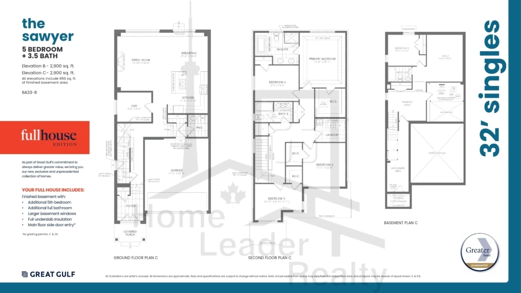 The Sawyer BA33-8FH C 5 Bed , 3.5 Bath 2895 SQFT
