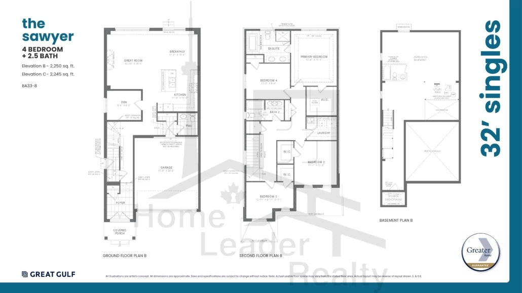 The Sawyer B 4 Bed , 2.5 Bath 2250 SQFT