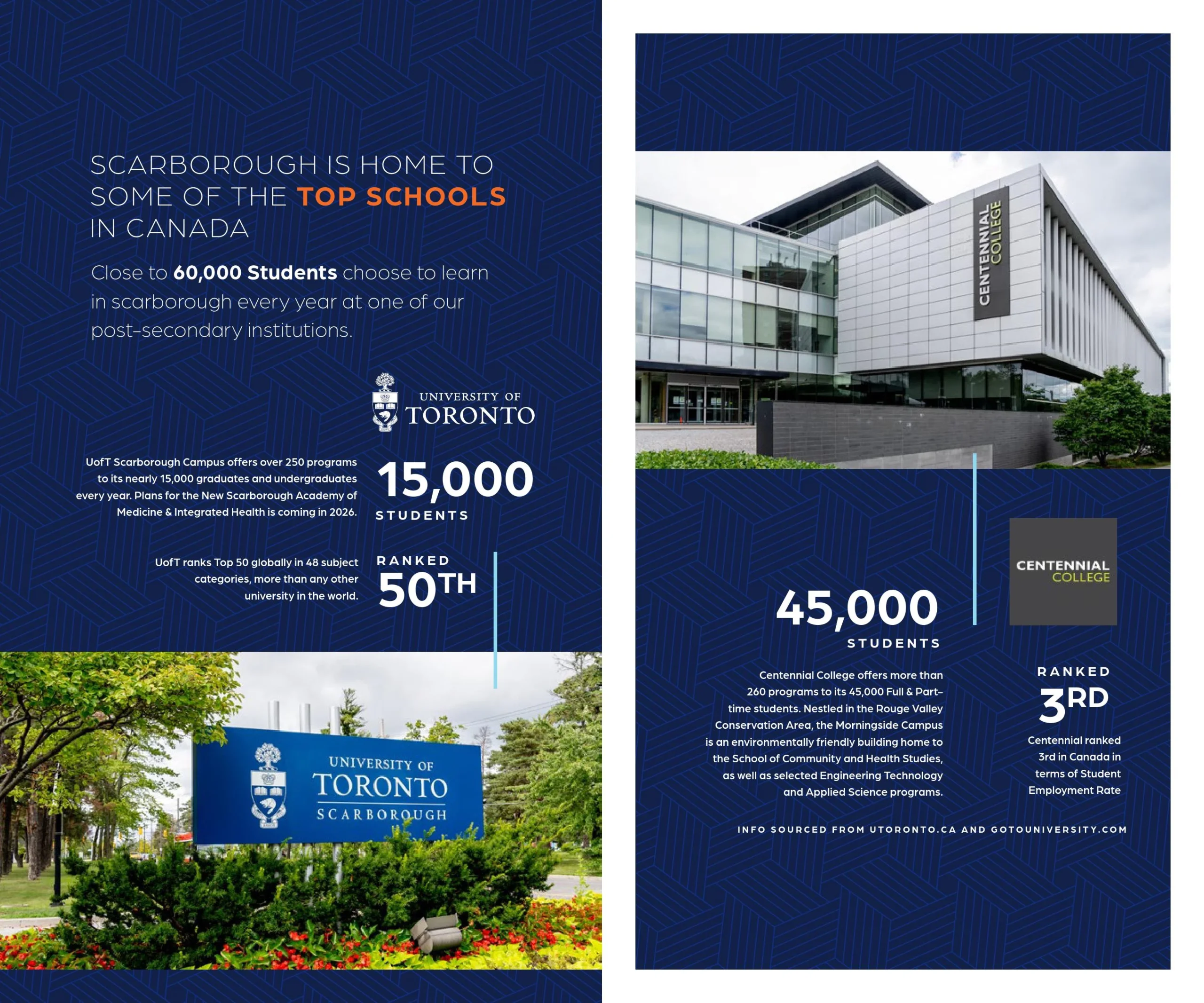 Textbook Towns by Profile Development Inc. is an exciting new townhome development located at Ellesmere Rd & Morningside Ave in Toronto’s Highland Creek neighborhood. This modern project comprises 51 urban townhomes within a sleek, four-storey building, with unit options from compact studios to expansive five-bedroom layouts. Just steps away from the University of Toronto Scarborough and Centennial College, Textbook Towns offers a unique opportunity for investors and residents alike to tap into the ever-growing demand for student housing.