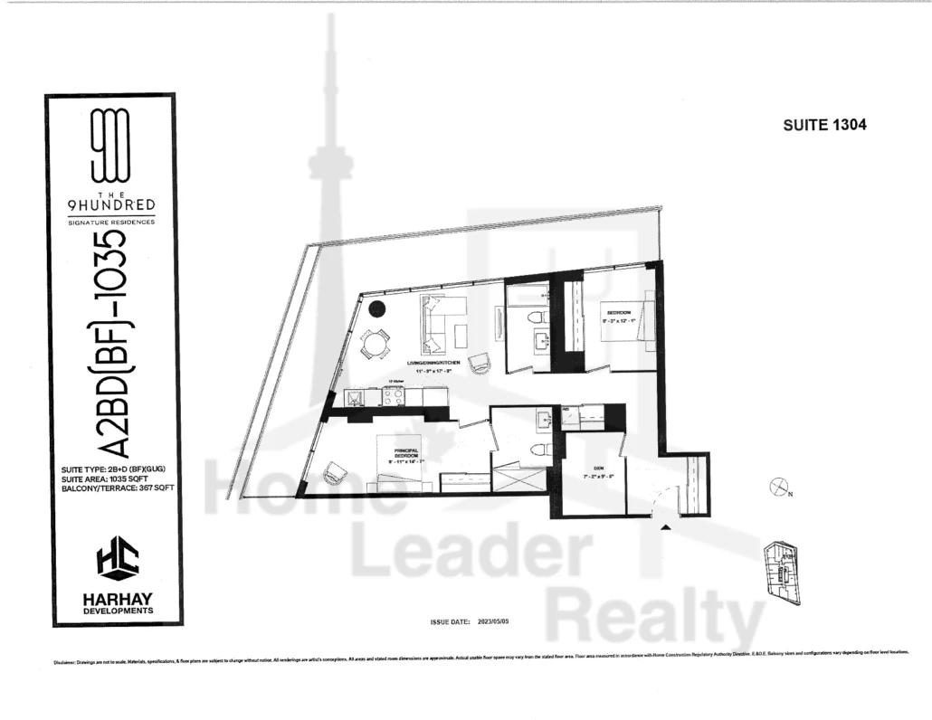 The 9Hundred Condos | 1304 2B+D 2 beds & 2 baths