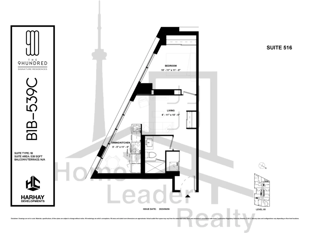 516 1B 1 Bed , 1 Bath 539 SQFT West