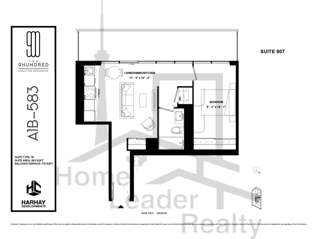 907 1B 1 Bed , 1 Bath 583 SQFT North