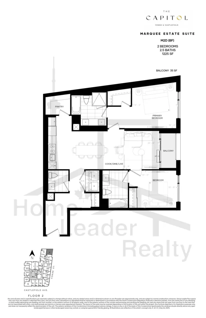 M2D(BF) 2 Bed , 2.5 Bath 1225 SQFT