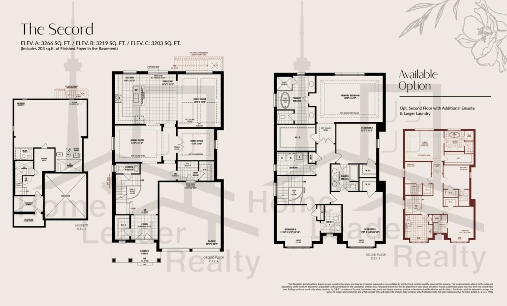 Secord Elev B | 4 Bed , 3.5 Bath | 3266 SQFT |