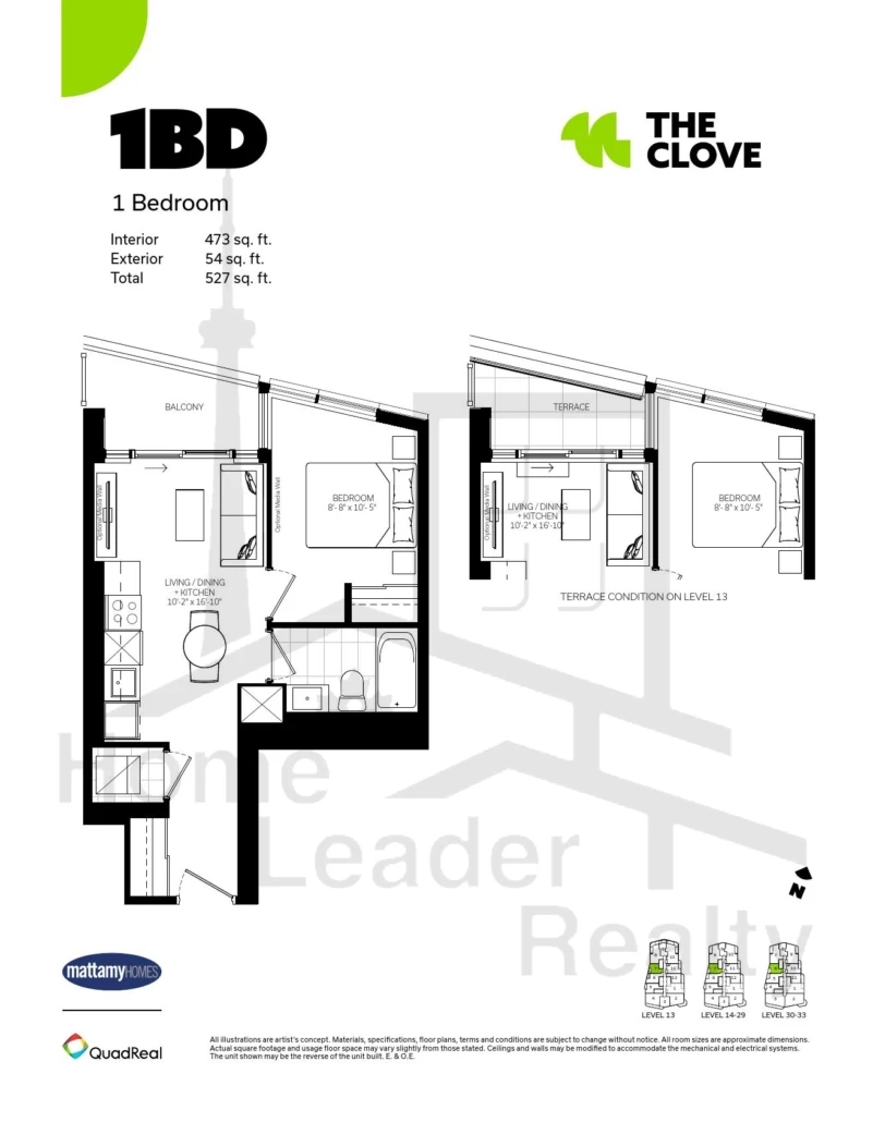 1BY 1 Bed , 1 Bath 524 SQFT East