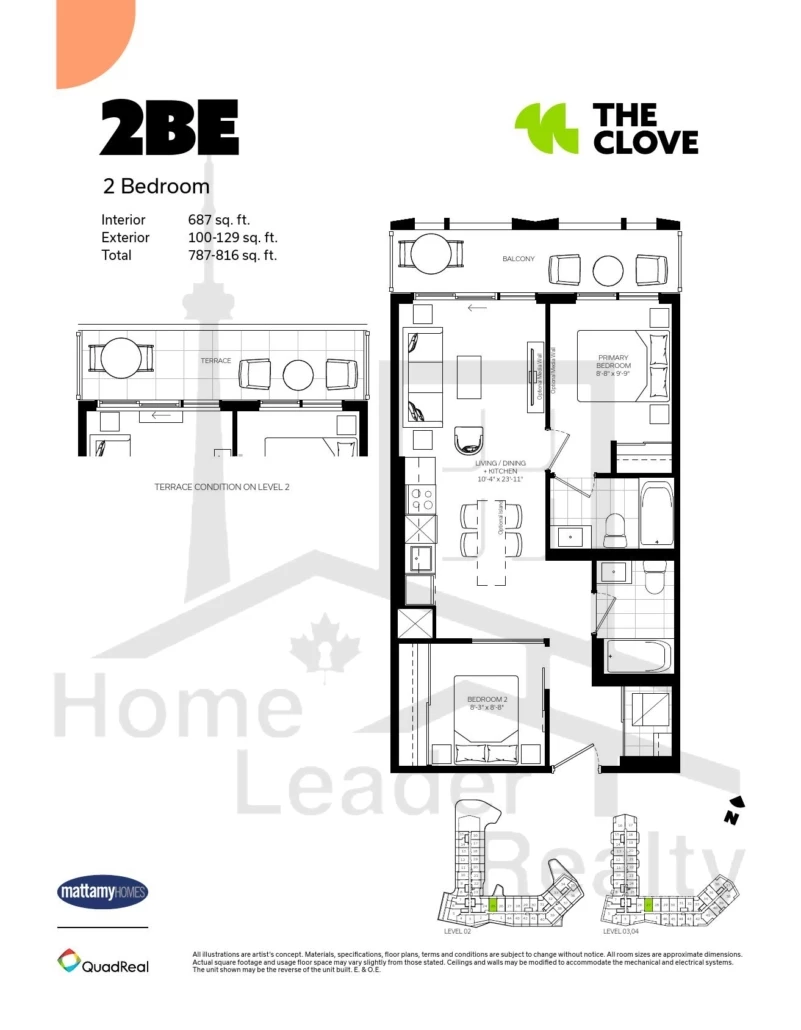 2BE 2 Bed , 2 Bath 687 SQFT North