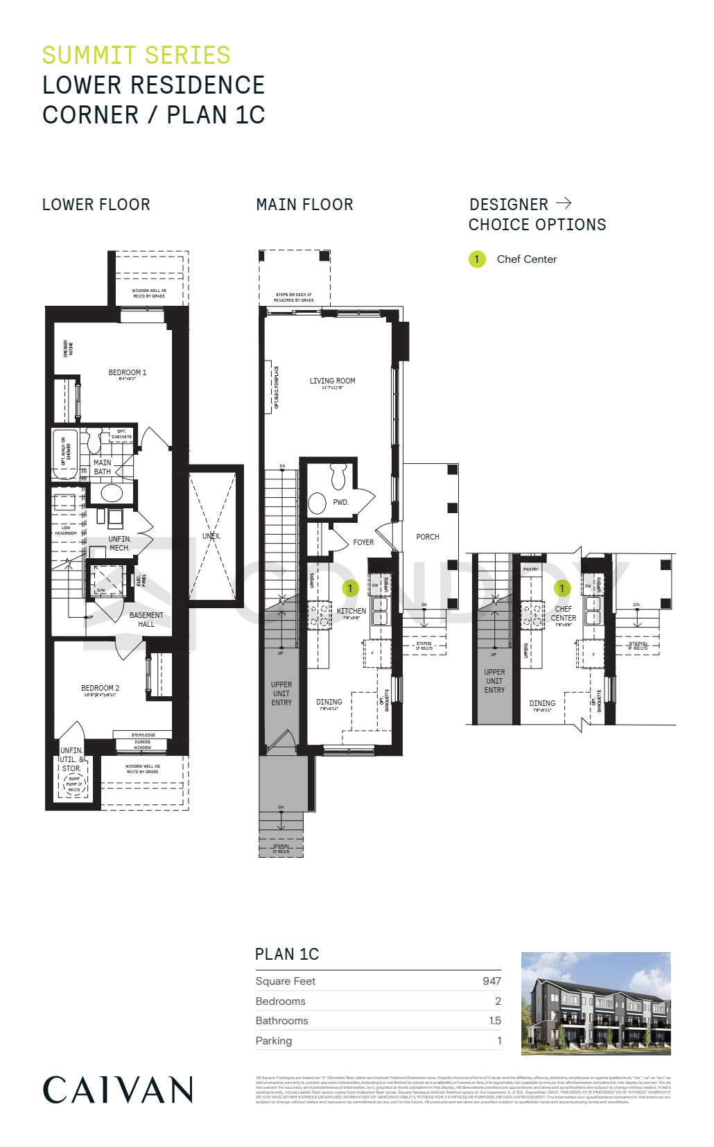 1C 2 Bed , 1.5 Bath 947 SQFT