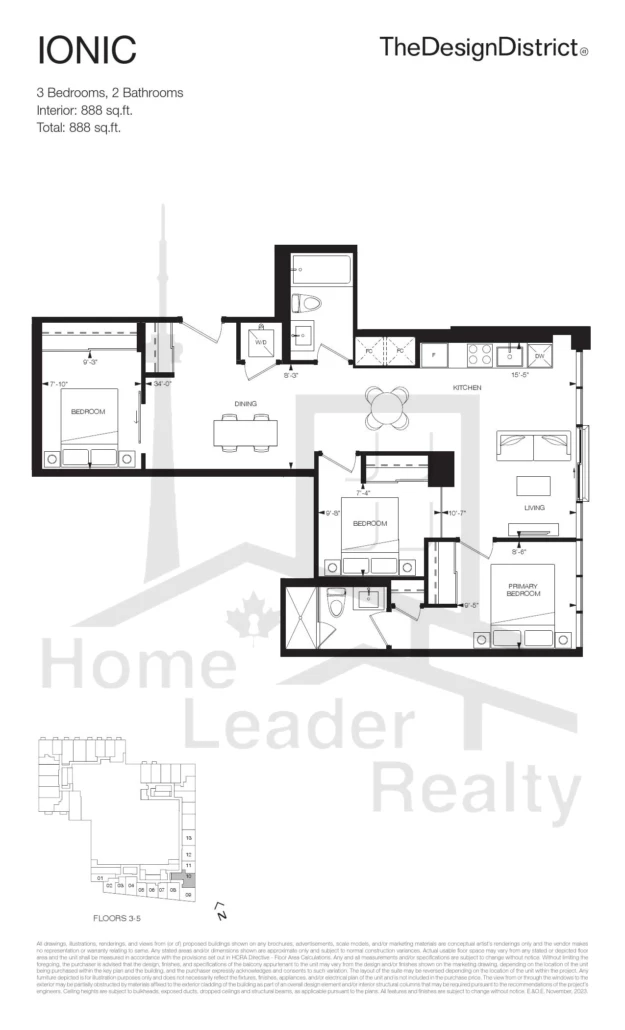 Ionic 3 Bed , 2 Bath 888 SQFT East
