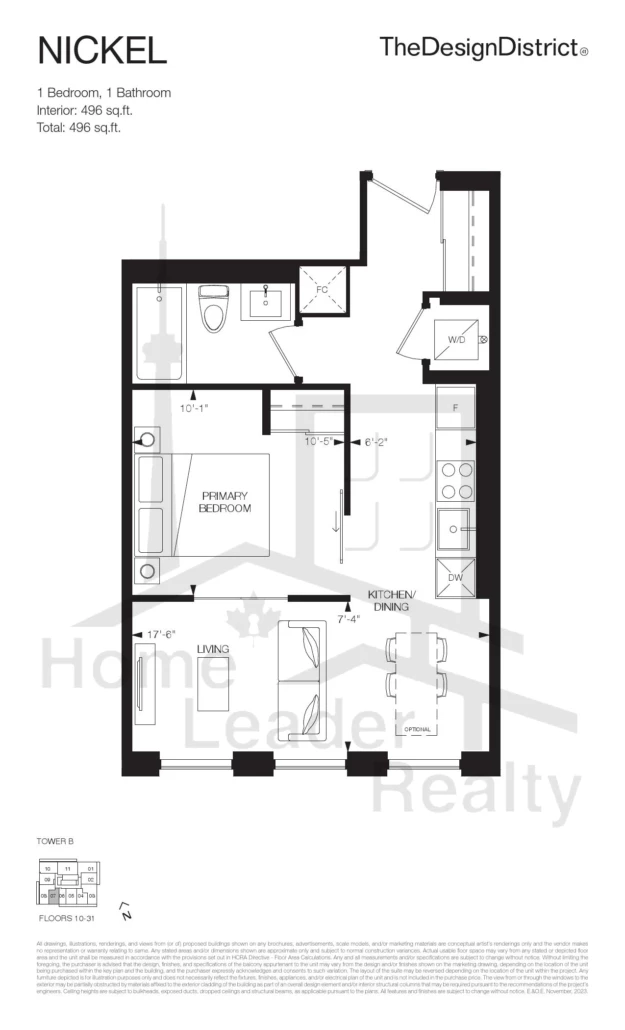 Brass - Tower B 1.5 Bed , 1 Bath 583 SQFT East