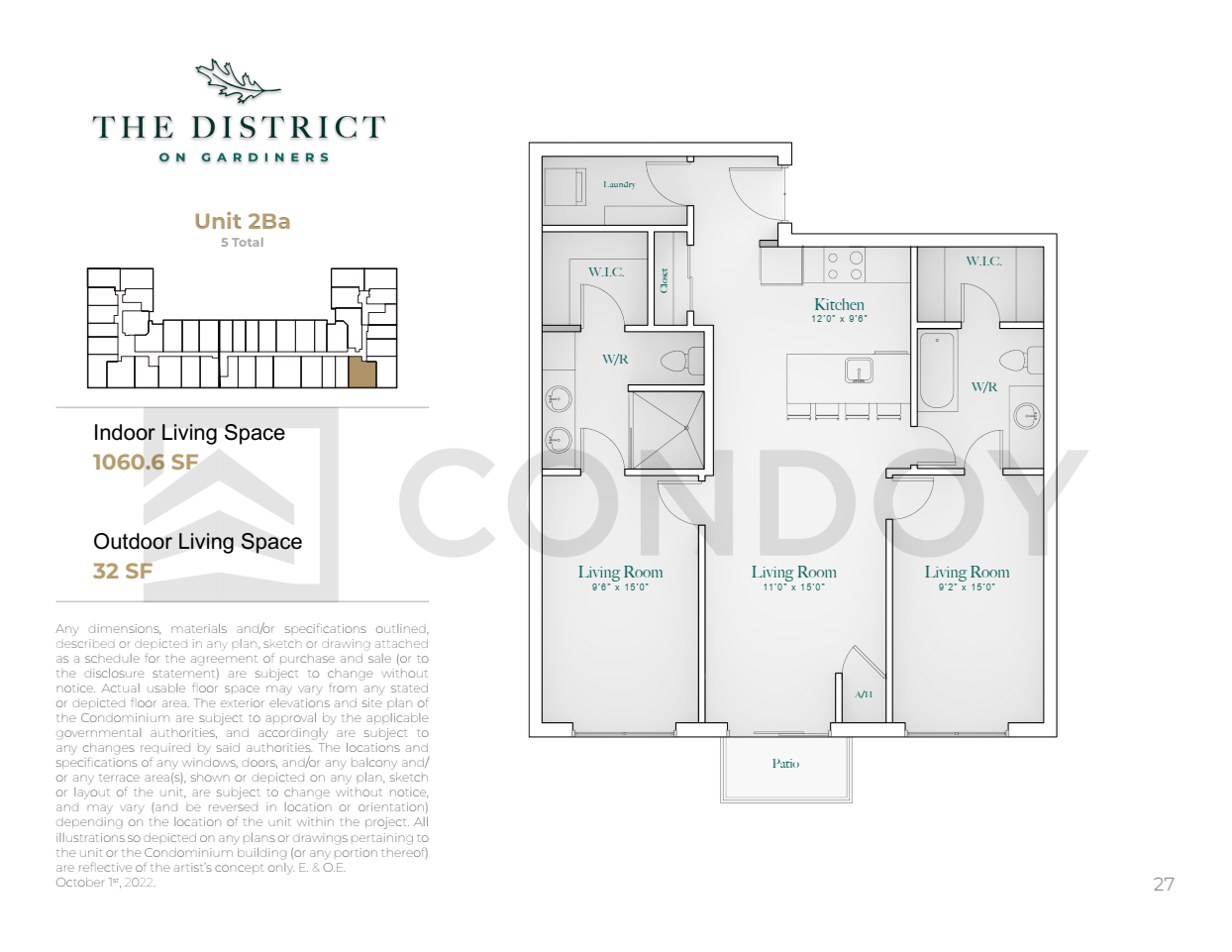 Unit 2Ab (BF) 2 Bed , 2 Bath 963 SQFT South