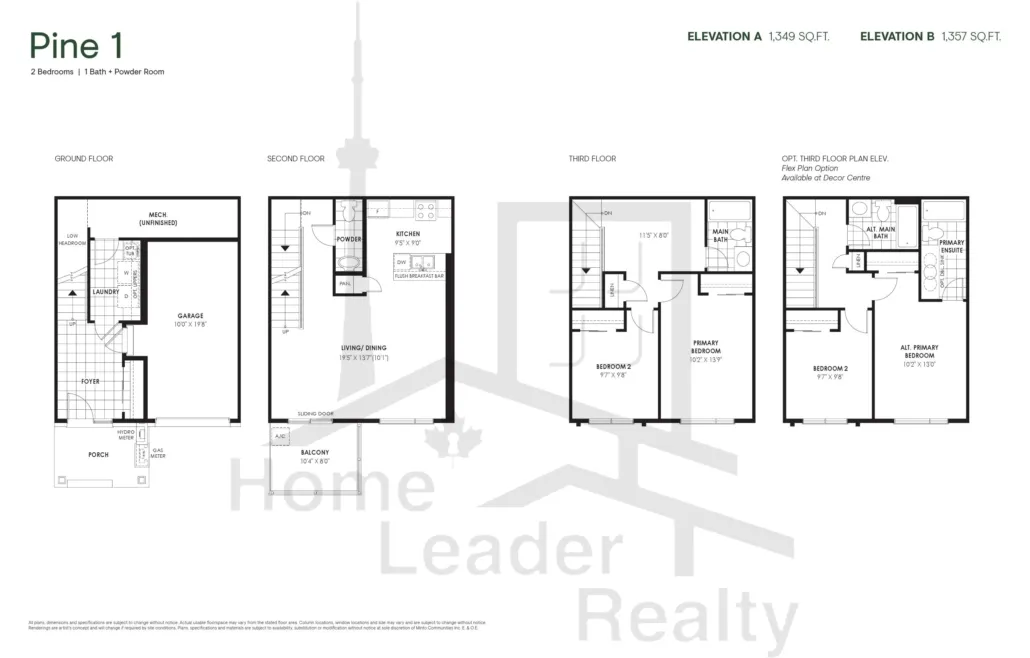 Pine 2(19-2)(19-5) 2 Bed , 1.5 Bath 1474 SQFT
