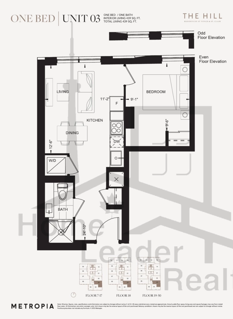 Unit 01 (19th floor) 1 Bed , 1 Bath 439 SQFT East