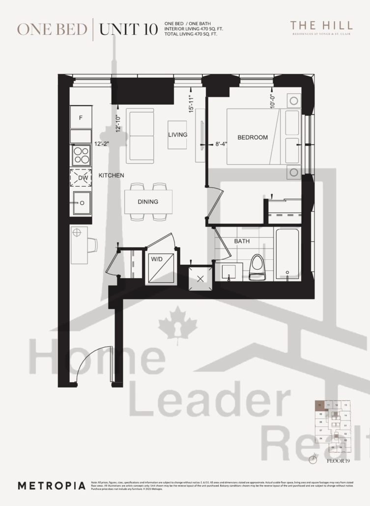 Unit 10 (19th Floor) 1 Bed , 1 Bath 470 SQFT North West