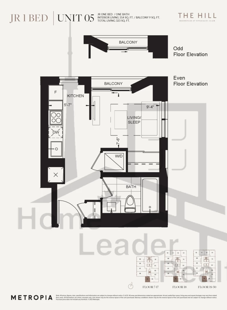 Unit 10 (19th Floor) 1 Bed , 1 Bath 470 SQFT North West