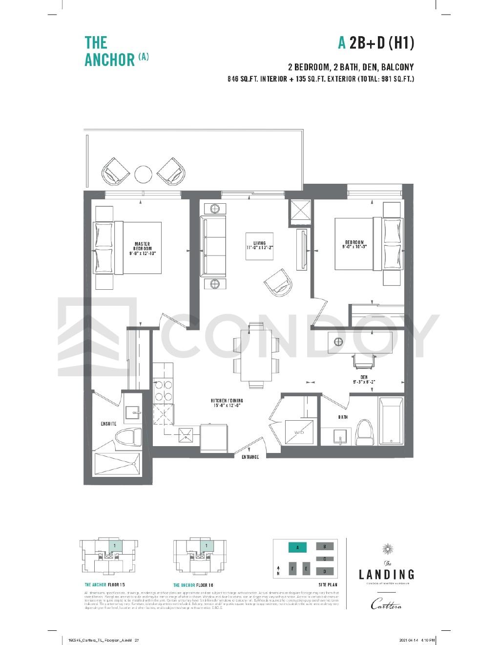 The Landing Condos | A 2B+D (H1) 2 beds & 2 baths