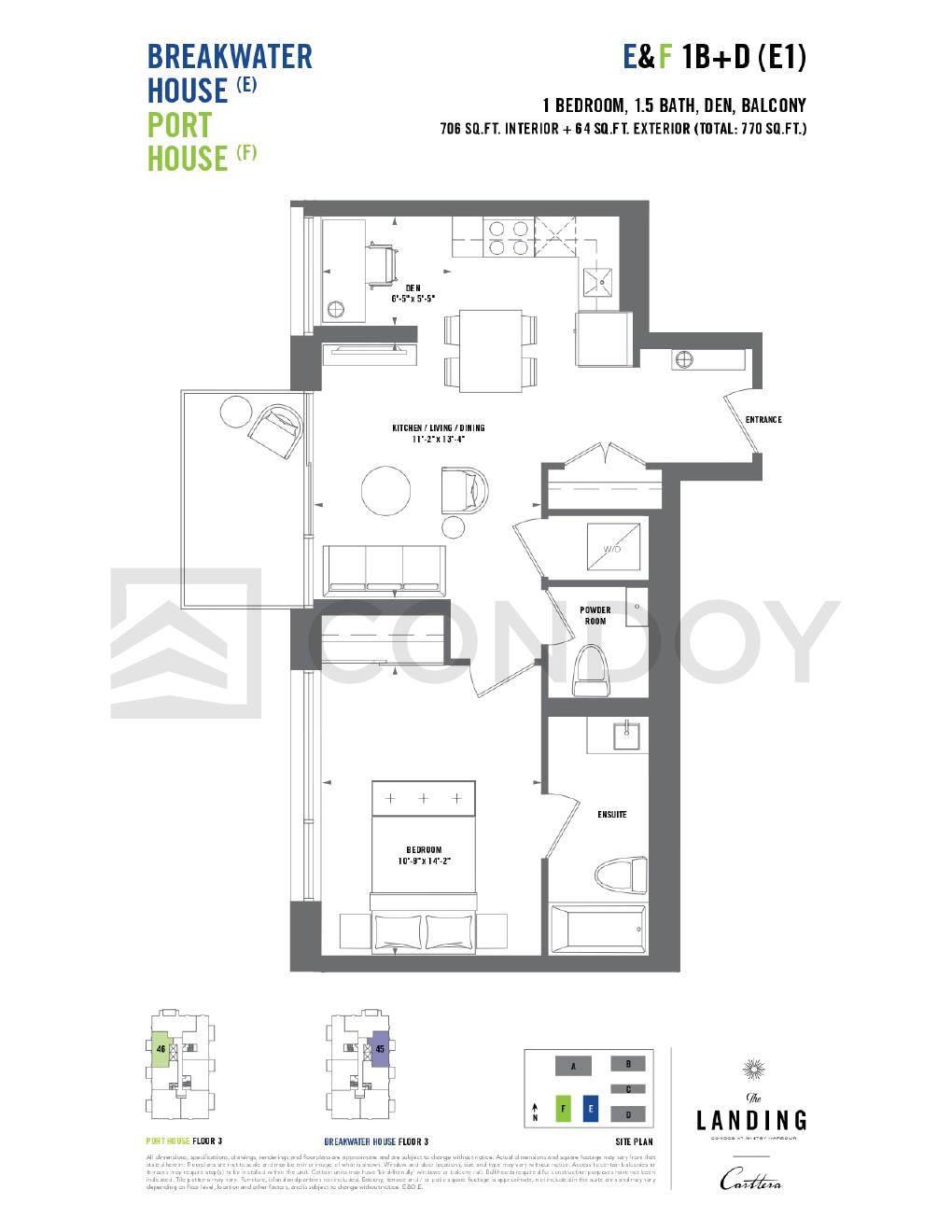 The Landing Condos | E&F 1B+D (E1) 1 bed & 1 bath