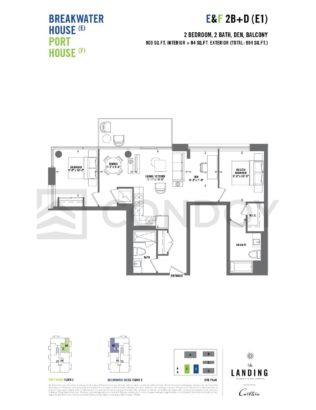 The Landing Condos | E&F 2B+D (E1) 2 beds & 2 baths