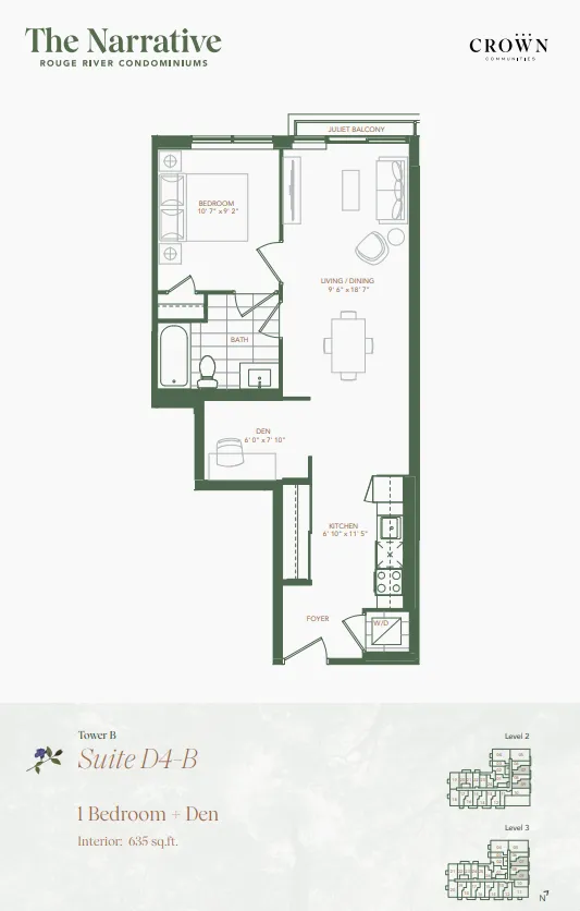 Suite D4-B (Tower B) 1.5 Bed , 1 Bath 635 SQFT East