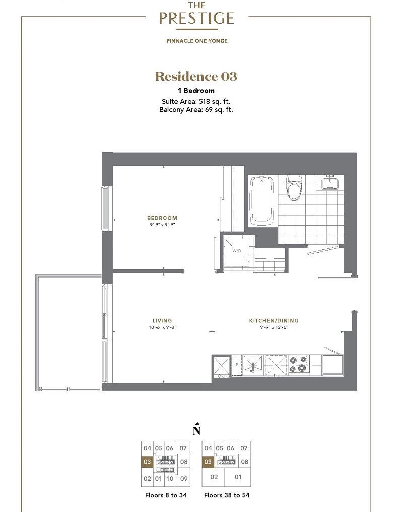 Residence 03 | 1 Bed , 1 Bath | 518 SQFT | North |