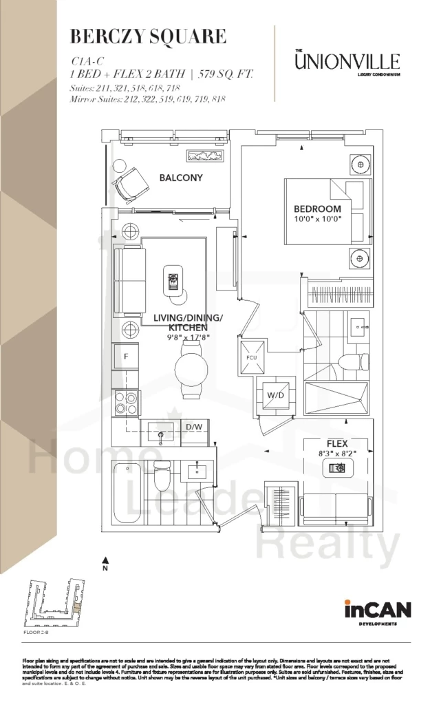Suite 542 D3 2.5 Bed , 2 Bath 813 SQFT East