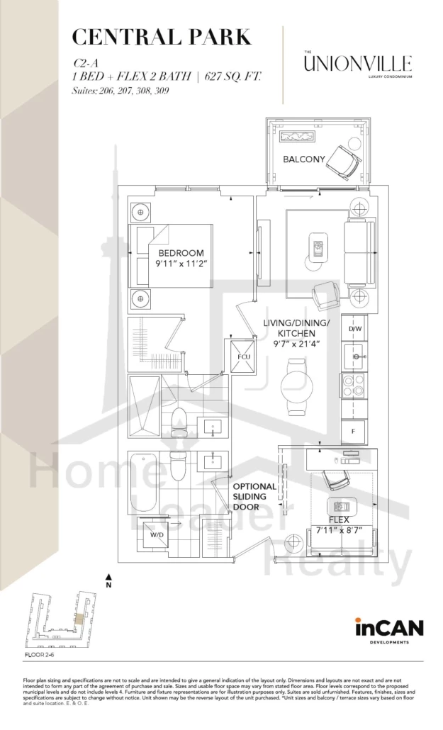 Suite 302 C4-A 1.5 Bed , 2 Bath 646 SQFT North