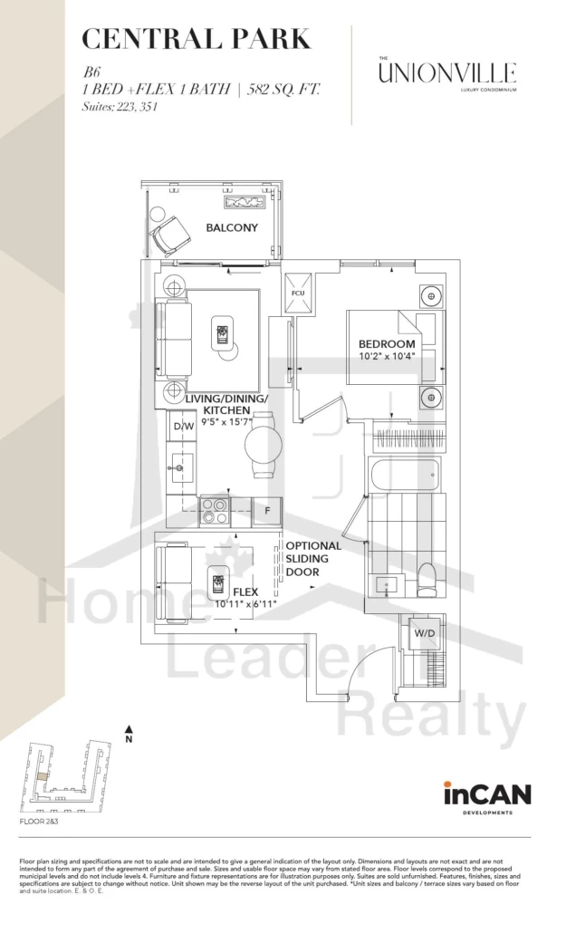 Suite 351 B6 1.5 Bed , 1 Bath 582 SQFT East
