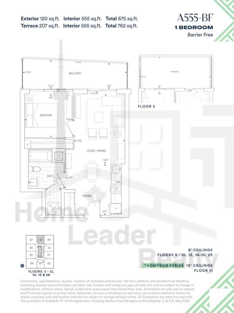 Interior Size : 555 sq.ft.