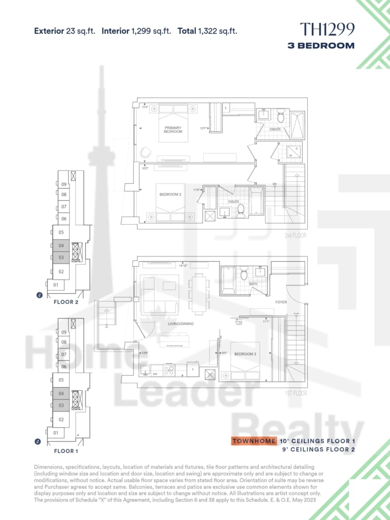 1204 2B+D 2.5 Bed , 2 Bath 957 SQFT South West