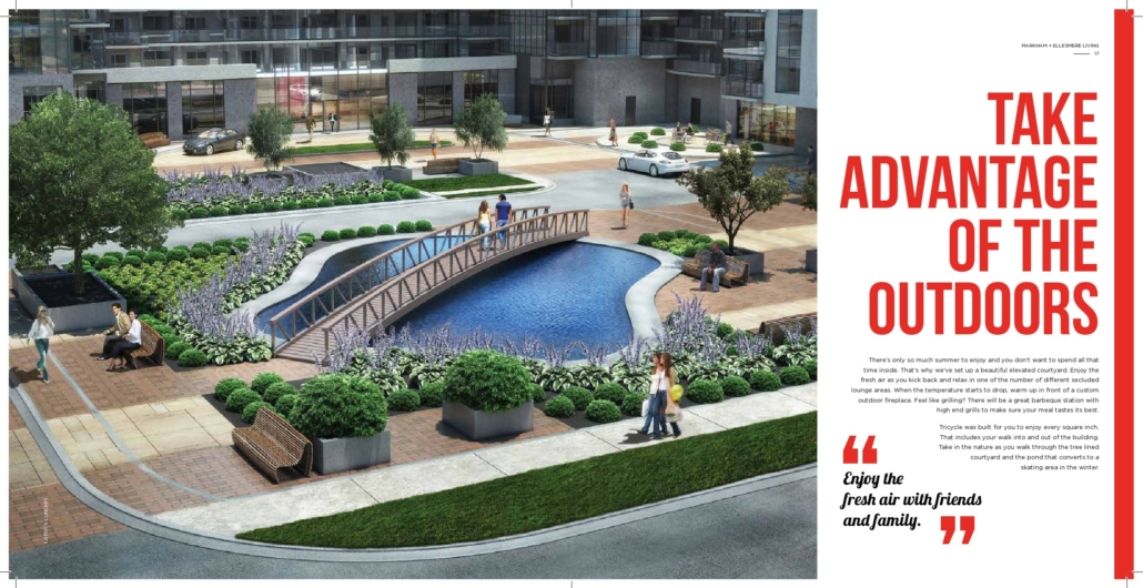 The courtyard pond and skating zone add a touch of whimsy to the community. Picture yourself gliding gracefully on the ice during the winter months or simply admiring the tranquil pond on a summer afternoon. It’s the little things like this that make Tricycle Condos feel like a true sanctuary.