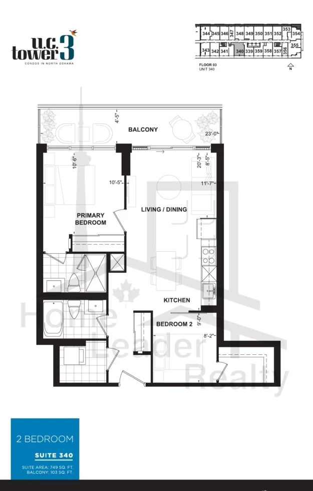 Unit 40 Level 3 2 Bed , 2 Bath 749 SQFT South