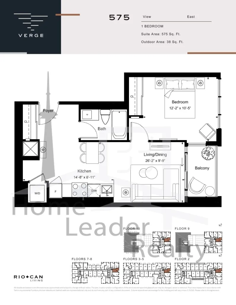 Suite 575 1 Bed , 1 Bath 575 SQFT East