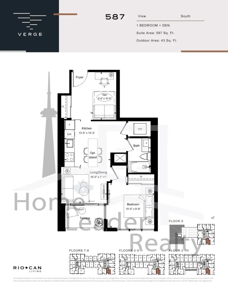 Suite 587 1.5 Bed , 1 Bath 587 SQFT South