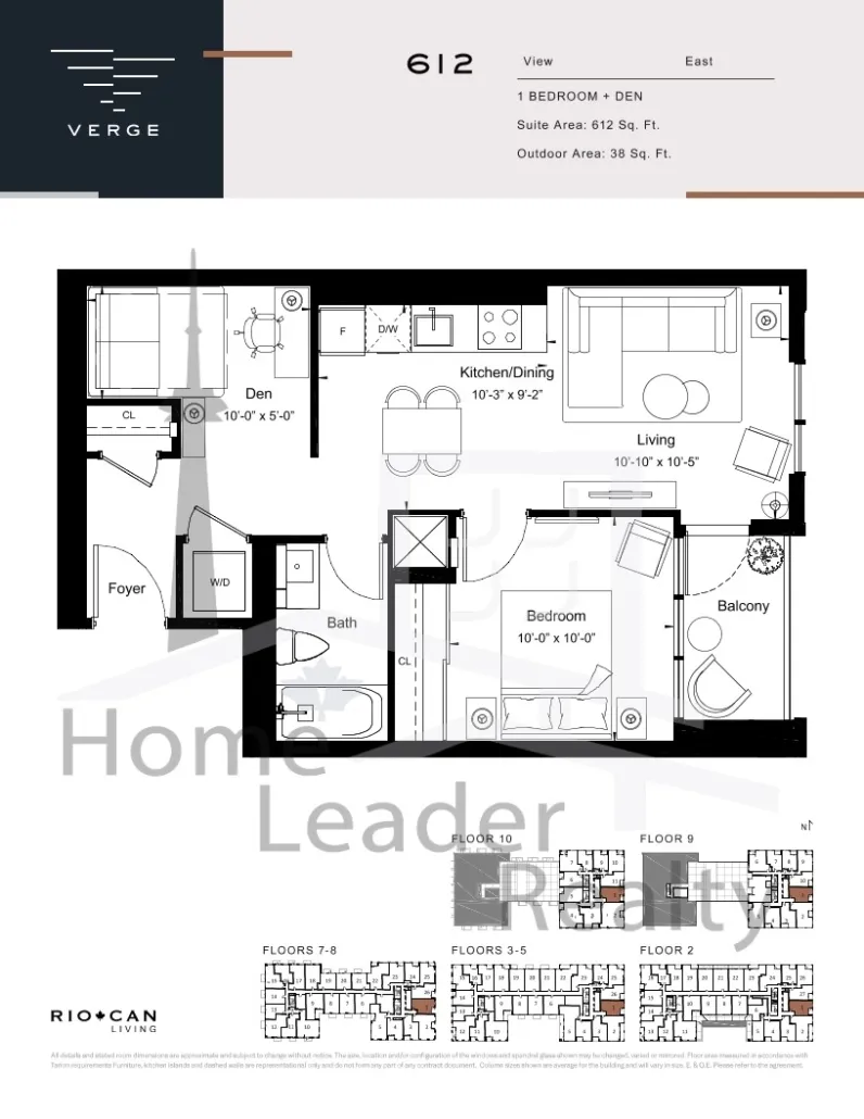 Suite 612 1.5 Bed , 1 Bath 612 SQFT East