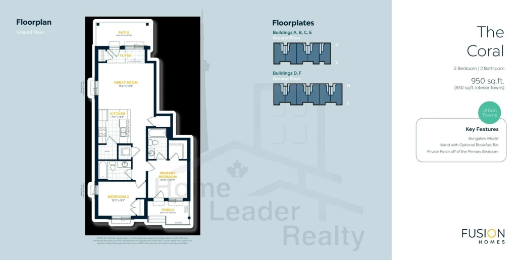 Coral-End 2 Bed , 2 Bath 950 SQFT
