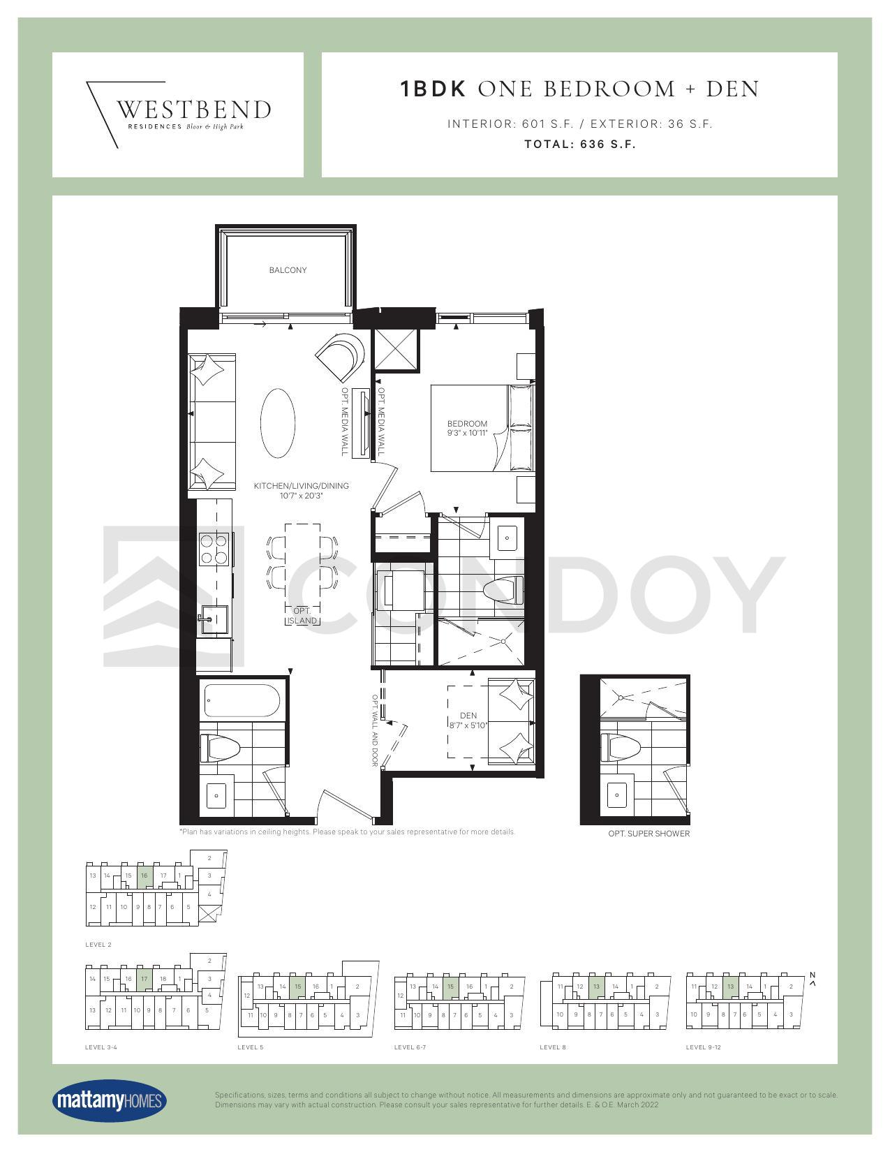 1BDK 1.5 Bed , 2 Bath 601 SQFT North