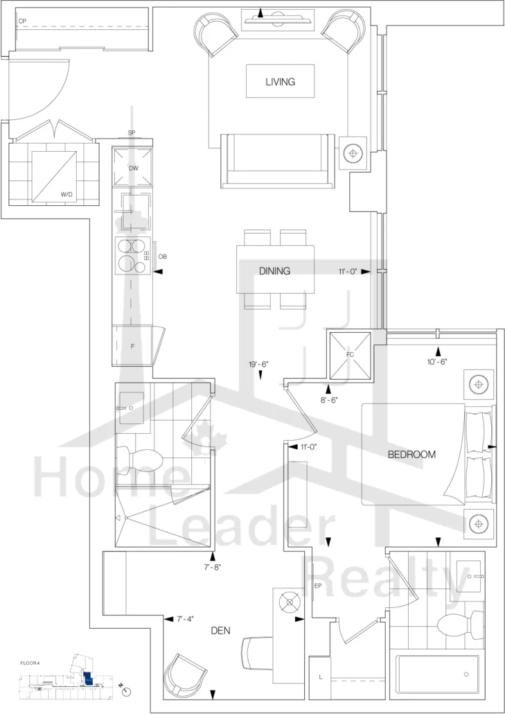 1FF+D 1 Bed , 2 Bath 863 SQFT North