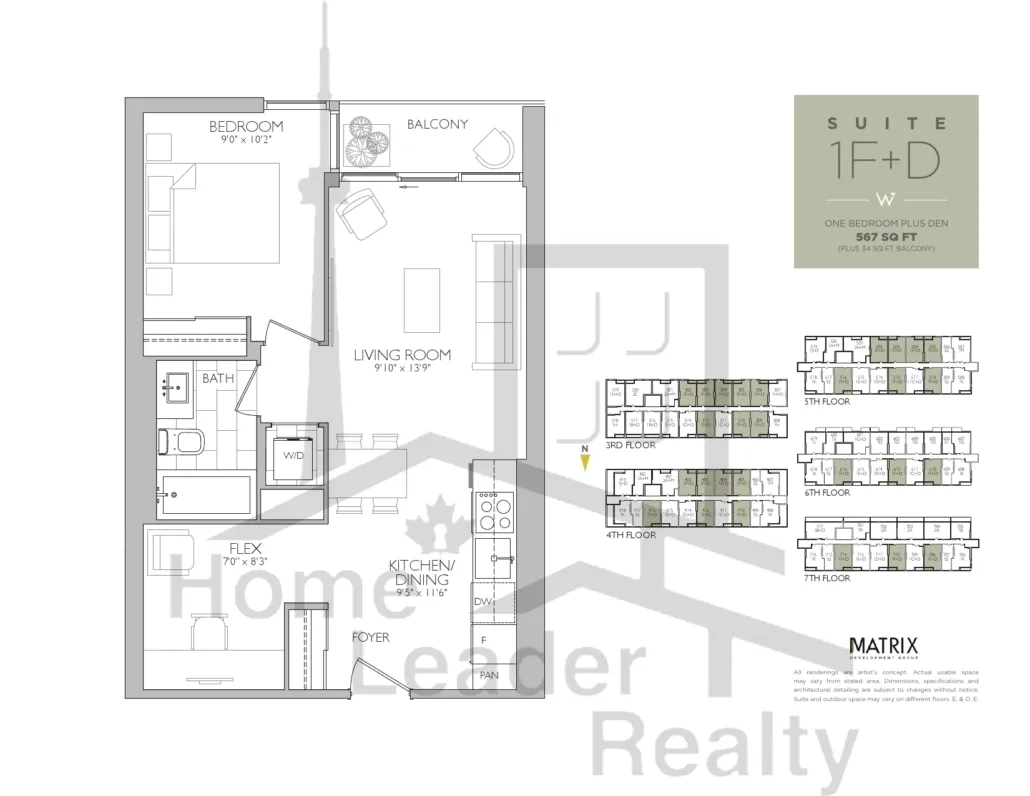 Suite 1F+D-(403-404-510) 1.5 Bed , 1 Bath 567 SQFT North